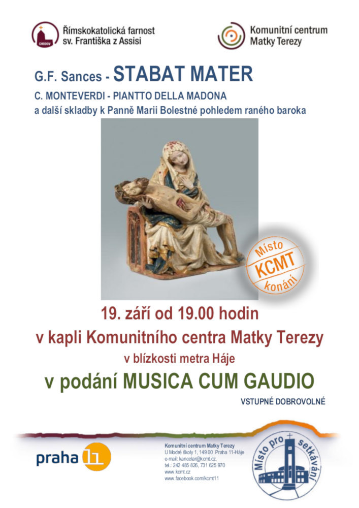 Komunitní centrum Matky Terezy, U Modré školy 1, Praha 11 - Háje. Začátek v 18 hod. Průvodní slovo P. Michael Špilar.